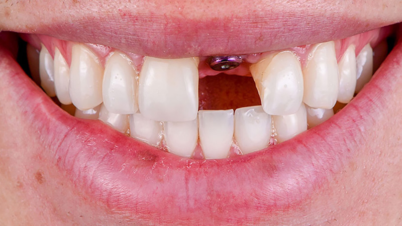 - Implant: a threaded titanium implant inserted into the tooth socket
